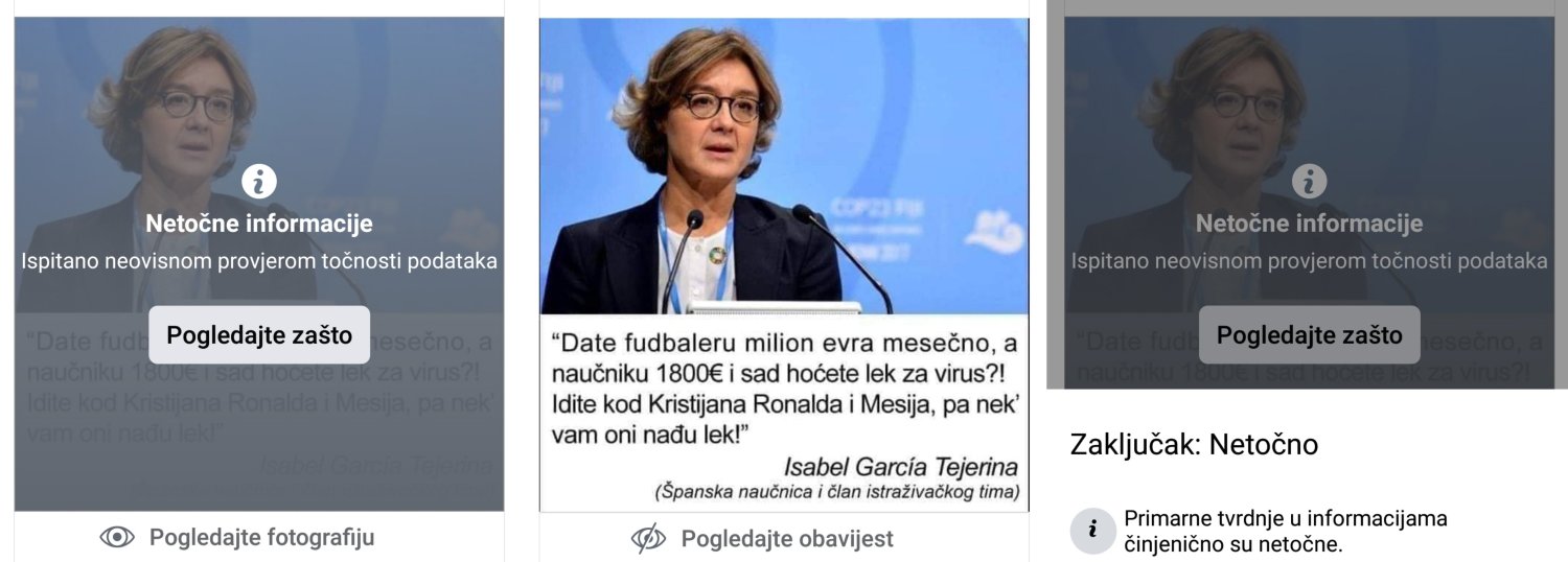 No, ono na što Vijeće za elektroničke medije ili netko drugi nadležni ne može toliko utjecati su društvene mreže. Korisnici istih, možda nehotično i nesvjesno dijele razne informacije bez provjere istinitosti. Facebook je već duže vrijeme imao u vidu globalno implementirati algoritam za prepoznavanje lažnih vijesti („fake news“), a ovih dana to je i zaživjelo. Napokon, i Facebook se bori s lažnim vijestima, a kao što se može vidjeti na slici: